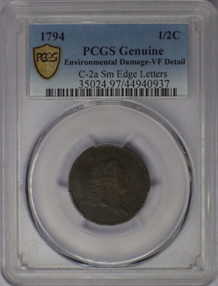 1794 Liberty Cap Half Cent C-2a Small Edge Letters - PCGS VF Details. The coin shown is the exact one you will receive.
